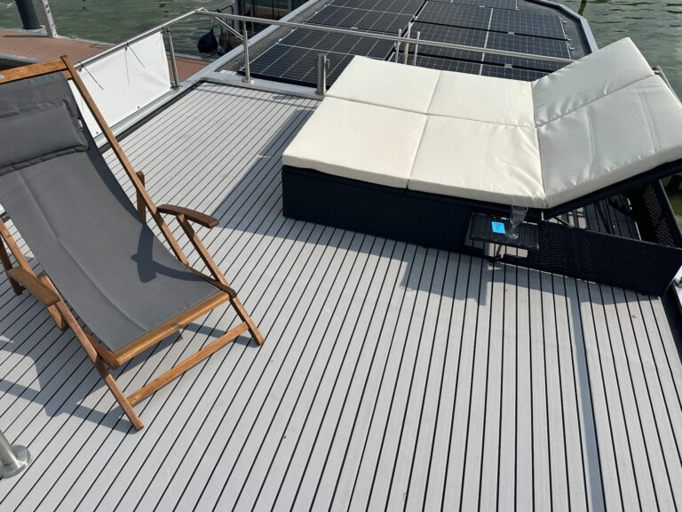 Einfach loslassen und den Alltag hinter sich lassen: Mit Olivia genießen Sie eine luxuriöse Auszeit auf dem Wasser. Dieses hochwertig ausgestattete Hausboot bietet Ihnen auf ca. 24 m² Wohnfläche und einer großzügigen Sonnenterrasse von 23 m² den perfekten Rahmen für Erholung und unvergessliche Momente.